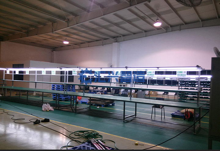 鏈板線采用A3板折制鏈板線專用軌道,而副導(dǎo)軌則采用角鐵制作。其中傳輸鏈條采用的是工業(yè)專用鏈板線鏈條;照明是采用單支帶罩T8LED日光燈,兩側(cè)連續(xù)安裝;工具吊軌采用專用風(fēng)批吊軌鋁材,兩側(cè)每米安裝一套風(fēng)批滑輪。此外,工藝看板采用專用雙杠H型鋁材做支架,每米配置一套亞克力板;采用6分鍍鋅制作而成的氣管和采用鍍鋅腳杯制作而成的地腳,共同為鏈板線的高效輸送保駕護(hù)航,能有力確保生產(chǎn)線的順利運行。