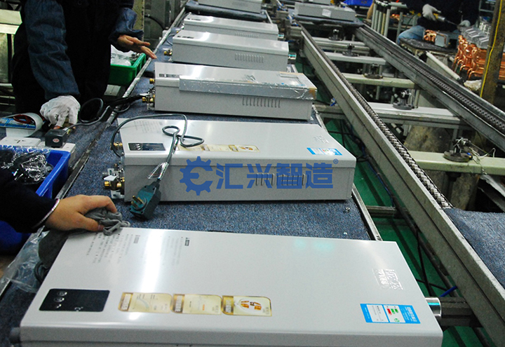 熱水器組裝線主要由鏈板輸送線組成,鏈板輸送機(jī)的輸送面平坦光滑,摩擦力小,可以安全且游刃有余地輸送熱水器配件并進(jìn)行組裝。