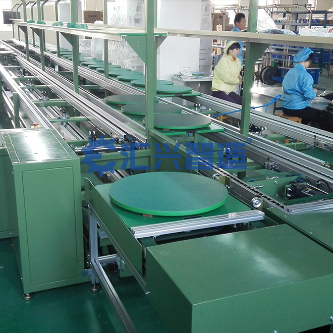 POS機裝配線,是指工件以一定的速率連續(xù)、均勻地通過一系列裝配工作站,按照一定要求在各裝配工作站完成相應裝配工作的生產線。匯興智造裝配線是人和機器的有效組合,最充分體現(xiàn)設備的靈活性,將輸送系統(tǒng)、隨行夾具和在線專機、檢測設備有機的組合,以滿足多品種產品的裝配要求。裝配流水線的傳輸方式有同步傳輸?shù)?(強制式)也可以是非同步傳輸/(柔性式),根據(jù)配置的選擇,實現(xiàn)手工裝配或半自動裝配。裝配線在企業(yè)的批量生產中不可或缺。