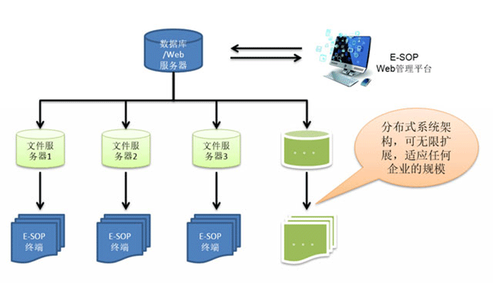 分布式的系統(tǒng)架構(gòu)和可擴展的文件服務(wù)器體系讓匯興智造E-SOP適應(yīng)不同大小的企業(yè),從幾十個工位到幾萬個工位,任您搭配。