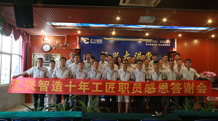 2017年8月6日,廣東匯興精工智造股份有限公司(股票代碼:839258)“十年工匠職員感恩答謝會(huì)”在匯興培訓(xùn)學(xué)校圓滿召開。鐘輝、辛曼玉、黃艷、鄧高全、彭大海等高層以及為匯興智造服務(wù)超過10年業(yè)內(nèi)經(jīng)驗(yàn)豐富的職員代表參加了本次感恩會(huì),精密零部件事業(yè)部銷售副總監(jiān)楊思主持本次會(huì)議。