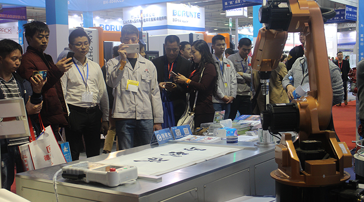匯興智造推崇中國傳統(tǒng)文化,一直以傳承弘揚中國文化為己任,把中國傳統(tǒng)文化揉入工廠運營、產(chǎn)品設(shè)備已是一派自然而然。由匯興智造自主研發(fā)的書法機器人在本次博覽會上大展拳腳,深情演繹中國書法。
