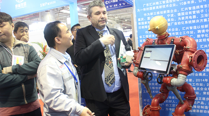 春風(fēng)吹過莞邑,有種力量在生長。11月28日,第三屆“廣東國際機器人及智能裝備博覽會”在東莞舉行。廣東匯興精工智造股份有限公司攜自主研發(fā)的機器人和智能設(shè)備在智博會上斗智、爭艷,好不得意。