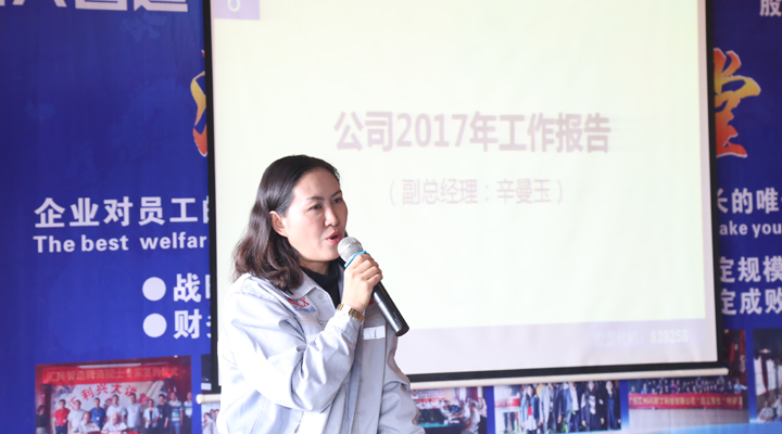 匯興智造副總經(jīng)理辛曼玉以一句“2017,您幸福嗎?”開啟大會的第六項(xiàng)議程,作2017年年度工作報告。辛副總說:“在2017年,匯興智造實(shí)現(xiàn)了16年來都沒有實(shí)現(xiàn)的銷售業(yè)績;成立了研究院、技術(shù)研究中心等研發(fā)機(jī)構(gòu),公司的研發(fā)能力得到提高;調(diào)整了產(chǎn)品結(jié)構(gòu),拓展了行業(yè)范圍,并且守護(hù)住了傳統(tǒng)行業(yè),夯實(shí)了業(yè)績;實(shí)現(xiàn)了配件事業(yè)的業(yè)績倍增,取得喜人成績;加強(qiáng)了人力資源建設(shè),老員工在進(jìn)步,能力在提升,而高學(xué)歷、高層次員工的加盟,讓匯興智造如虎添翼。這一年,雖然我們經(jīng)歷了困難、挫折,但取得的成績是驕人的。匯興智造在往前走,往上走,我們在上坡的過程中,會氣喘,會腿酸,很累,但當(dāng)我們爬上山頂?shù)臅r候,那種‘會當(dāng)凌絕頂,一覽眾山小’的豪情和喜悅卻是無法比擬的。所以,如果有人問:2017,您幸福嗎?我會回答:我很幸福!”