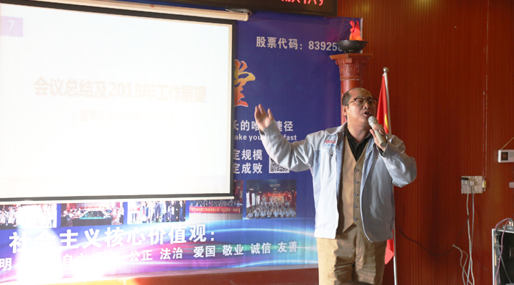 大會的最后一個議程是匯興智造鐘輝董事長作會議總結(jié)及2018年工作展望。鐘輝董事長說道:“我們報喜不藏憂,變化不變心。2017年,匯興智造喜事不斷:入選東莞市倍增計劃試點(diǎn)企業(yè);成立東莞市院士工作站;進(jìn)入新三板創(chuàng)新層;獲批了35畝企業(yè)用地;市重大項(xiàng)目補(bǔ)助落實(shí);德國子公司建立;在國際科技合作周活動中,承辦的德國館和論壇萬眾矚目,省長、各部級領(lǐng)導(dǎo)、院士大加贊賞;申報了廣東省成長型企業(yè);戰(zhàn)略性新興產(chǎn)業(yè)骨干(培育)企業(yè)評審?fù)ㄟ^;銀行授信額度增大;知識產(chǎn)權(quán)貫標(biāo);業(yè)績倍增,納稅1000多萬,成為大嶺山鎮(zhèn)納稅大戶。雖然我們?nèi)〉昧撕玫某煽?,獲得了好的聲譽(yù),但我們不能藏憂,人才建設(shè)的加強(qiáng);管理制度的完善;銷售業(yè)績的增長;訂單的消化;收款流程的優(yōu)化;各部門溝通協(xié)調(diào)的加強(qiáng)等等,我們還有很多問題需要解決。‘茍日新,日日新,又日新’,生活從不眷顧因循守舊、滿足現(xiàn)狀者。我們要變化,有了變化,才有進(jìn)步。我們的車間變得更規(guī)范,辦公區(qū)域變得更漂亮;供應(yīng)商變得更優(yōu)質(zhì);我們提供給客戶的產(chǎn)品和服務(wù)變得更豐富;客戶群體變得更高端。但是不管怎么變,任爾東西南北風(fēng),在即將到來的2018年,我們?nèi)匀粓?jiān)守初心,牢記使命,砥礪前行?!?nbsp;