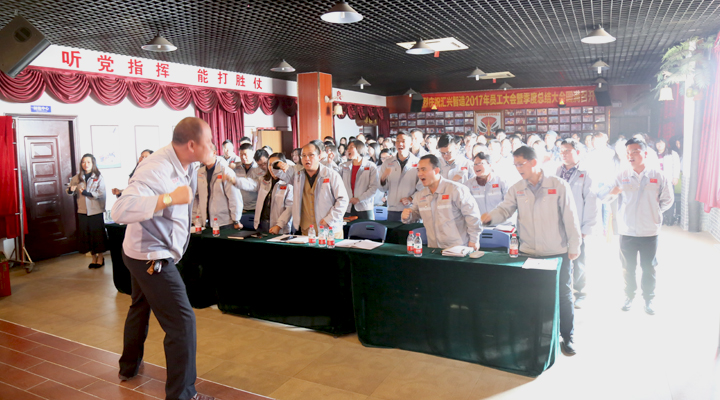 “為夢想沖刺,我是匯興智造的一名忠誠戰(zhàn)士,殺!殺!殺!”,震天喊聲響徹會場,匯興人殺掉困惑,殺掉不妥,殺掉阻礙,挺胸抬頭,勇往直前?!靶坳P(guān)漫道真如鐵,而今邁步從頭越”,2017已不可追,2018正等著匯興智造再創(chuàng)佳績。