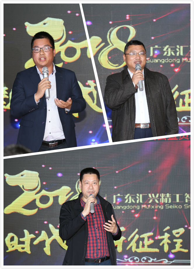 東莞證券何總、大信會計事務所黃總、華商律師事務所姜總等嘉賓致辭,均表示在2017年與匯興智造合作得相當愉快,同賀匯興智造取得驕人成績,并表達了在2018與匯興智造繼續(xù)合作的愿望,共祝匯興智造再創(chuàng)輝煌。