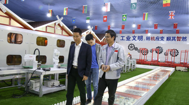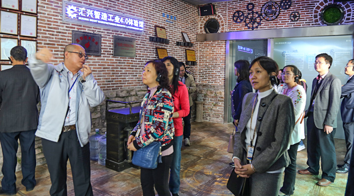 匯興智造董事長鐘輝陪同大家參觀工業(yè)4.0智能裝備體驗館