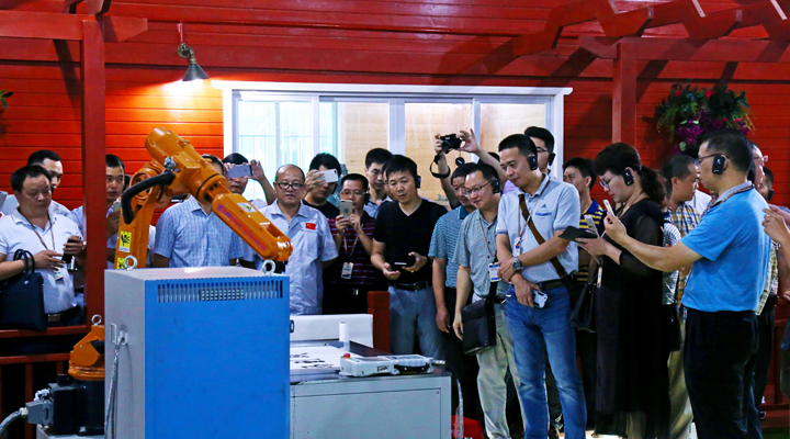 董事長鐘輝陪同五華縣科技骨干團一行參觀了匯興智造工業(yè)4.0體驗館。介紹了體驗館“順其‘智’然”、機‘智’未來”的設(shè)計理念,如何將物聯(lián)網(wǎng)、傳感技術(shù)、大數(shù)據(jù)、工業(yè)機器人等技術(shù)融入到傳統(tǒng)生產(chǎn)制造中,最終實現(xiàn)智慧車間數(shù)字化工廠的目標。