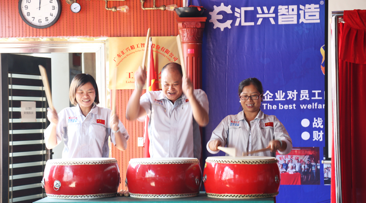 東莞市大嶺山鎮(zhèn)工商行政管理局袁洪副局長(zhǎng),張昕栓股長(zhǎng),匯興智造董事長(zhǎng)鐘輝,上市辦辛主任,監(jiān)事長(zhǎng)呂常垣,財(cái)務(wù)總監(jiān)呂漪,行政總監(jiān)黃艷,營(yíng)銷總監(jiān)楊思等一同舉行簡(jiǎn)單而隆重的揭牌儀式。鐘董事長(zhǎng)對(duì)袁局長(zhǎng)的到來表示熱烈歡迎,并且深情感謝大嶺山鎮(zhèn)這片樂土,匯興智造能取得一系列的資質(zhì)和榮譽(yù),離不開政府各級(jí)部門認(rèn)可與肯定,離不開大嶺山這片土壤很好的營(yíng)商環(huán)境。袁局長(zhǎng)在儀式上總結(jié)發(fā)言,“匯興智造是一個(gè)非常有朝氣的企業(yè),用士氣鼓來鼓舞士氣,確實(shí)令人耳目一新與眾不同,能做到企業(yè)文化和企業(yè)發(fā)展融合在一起,這真的很少見,很有才氣,很有情懷,而且再獲“守重”資質(zhì),更說明公司是一家誠(chéng)信經(jīng)營(yíng)非常有前景的好企業(yè)?!睆V東省守合同重信用企業(yè)”榮譽(yù)稱號(hào)是對(duì)企業(yè)資質(zhì)規(guī)模一種肯定,其實(shí)更是金字招牌,我們也希望工商部門與企業(yè)有更多的互動(dòng)。